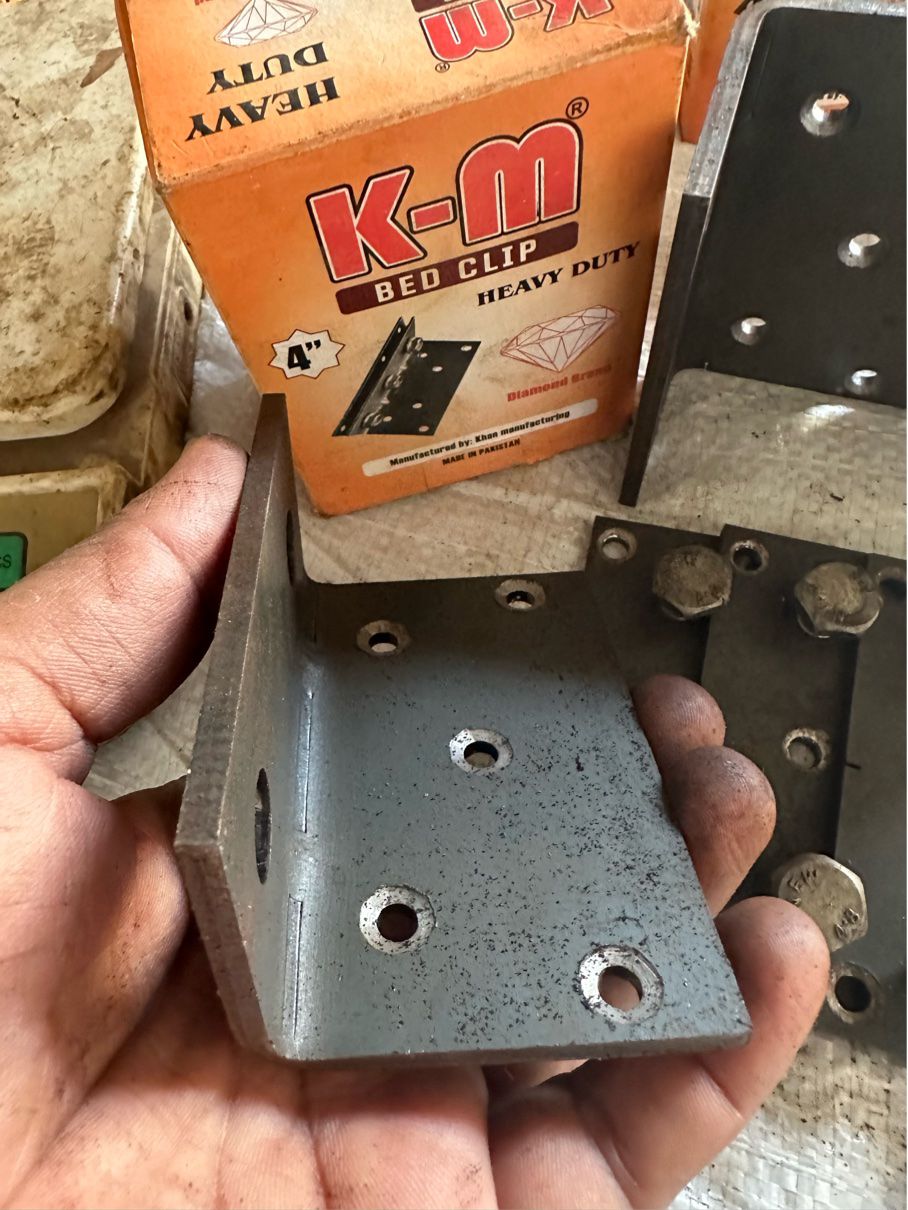 In short, the images show a set of heavy-duty metal bed clips that are highly effective for building strong, stable bed frames.